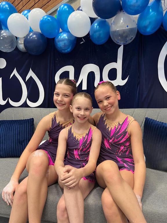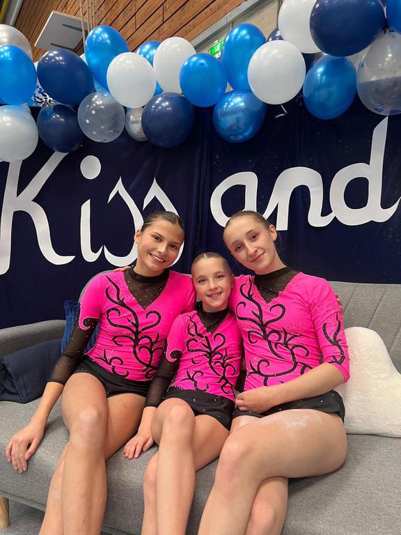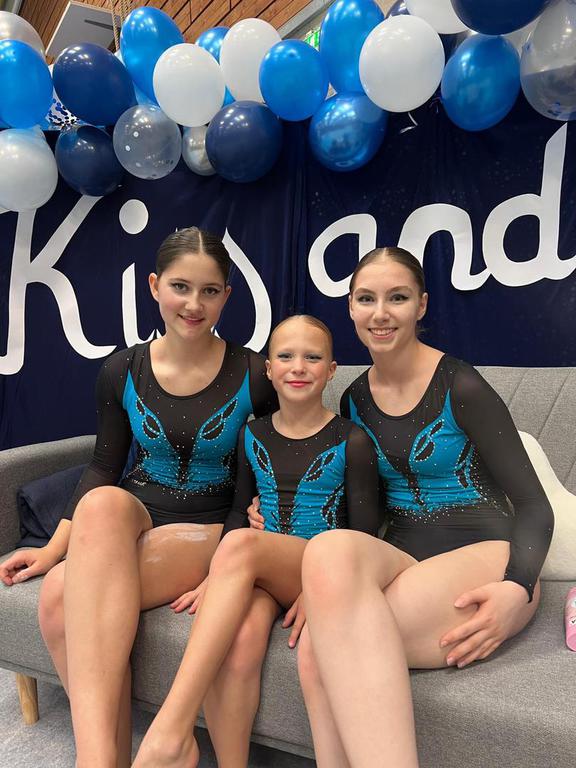 Gold ging ebenfalls an das jüngste Trio Mara Wunderlich, Nela Werner und Merle Kilian (KFL 1). Mit viel Konzentration und Spannung präsentierten sie ihre Kür. Die Gruppenelemente turnten sie nahezu perfekt, sodass sie eine hohe Techniknote erhielten. Als an der Anzeigetafel die höchste Vereinswertung des Tages von 23,410 Punkten erschien, konnten die Freudentränen nicht zurückgehalten werden.