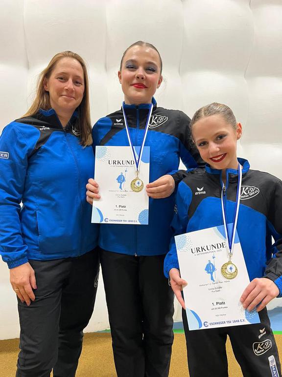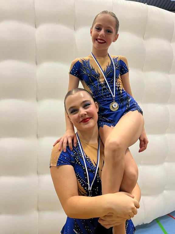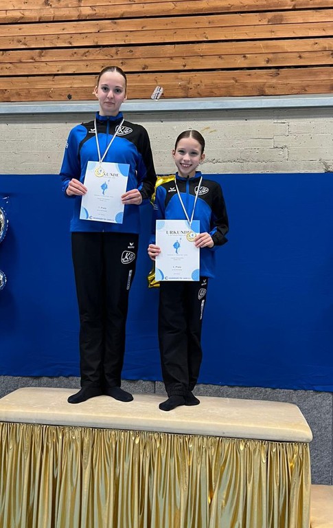 Die beiden Paare Emilia Schäfer, Pia Stahl (WKK 1.2) sowie Hannah Schweickert, Emilia Lais (WKK 1.1) präsentierten eine ausdrucksstarke Choreographie. Auch ihre Paarelemente führten sie sauber aus. Schäfer/ Stahl erhielten 23,350 Punkte. Schweickert/ Lais erturnten 23,370 Punkte. Beide Paar sicherten sich damit den 1. Platz und die Goldmedaille.